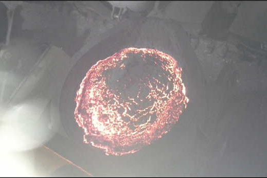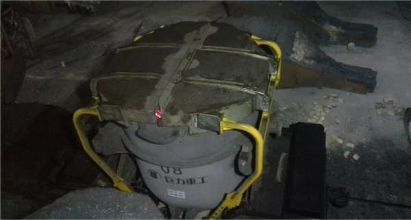 加盖装置雨天运行时罐盖表面情况。罐盖表面有水渍,表明罐盖表面温度不高,保温层效果明显。